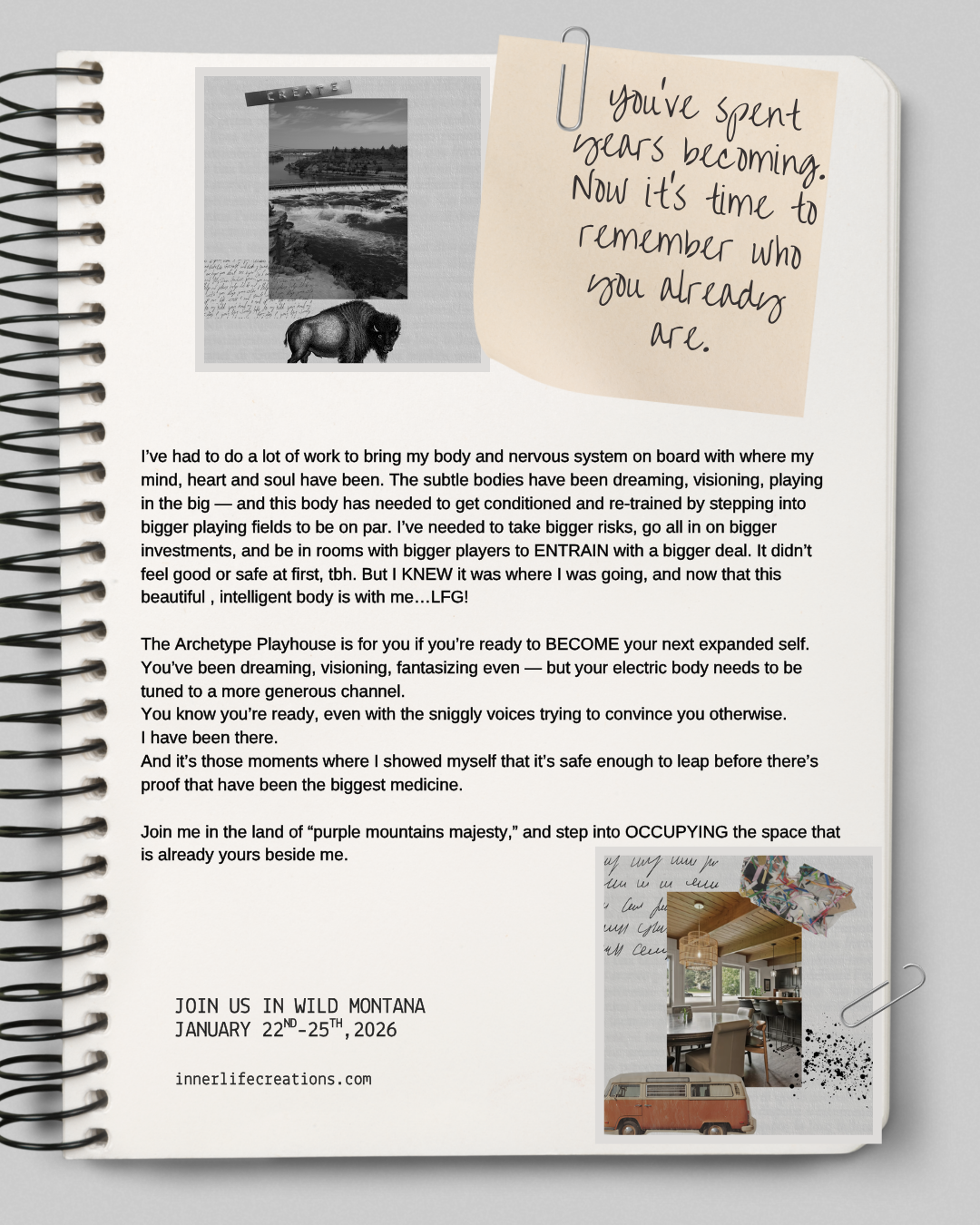 You'll leave with your nervous system re-tuned, your creative current restored, and your inner architecture reoriented toward possibility and HOPE (vision with expectancy that that vision is not only possible, but already here.)