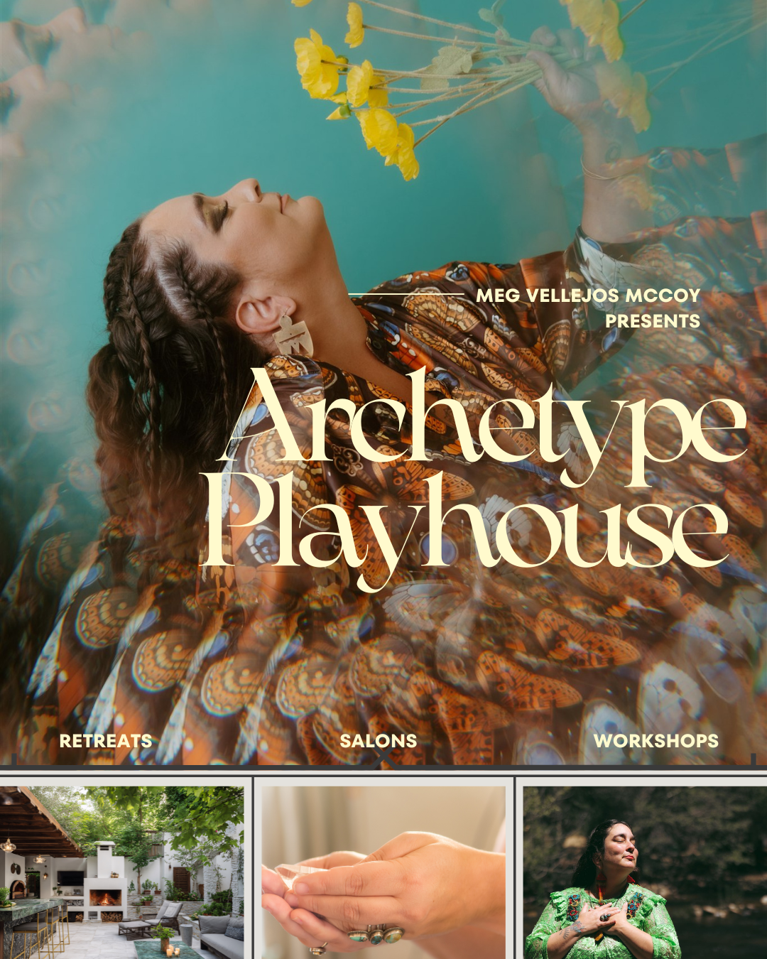 Through immersive salons, retreats, and workshops, we meet crisis as raw creative material—an invitation to remember how to imagine beyond survival. Each gathering is a living laboratory where archetypes become portals, myth becomes medicine, and play becomes a sacred act of regeneration. By working together in person we create a shared space to do this work in community, vs always carrying the burden by ourselves.