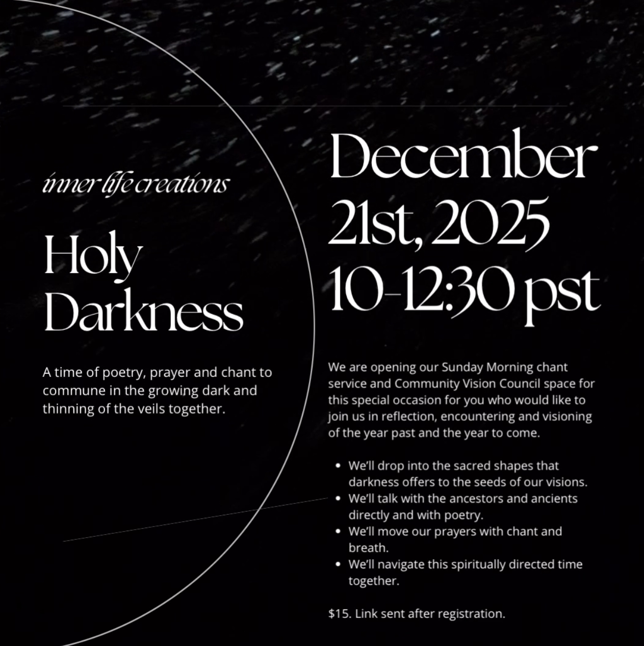 We are opening our Sunday Morning Chant Service and Community Vision Council space for this special occasion for you who would like to join us in reflection, encountering and visioning of the year past and the year to come. $15. Link sent after registration.